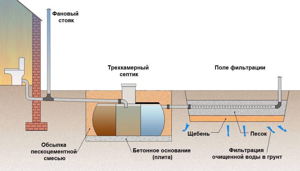 Обратите внимание на то, что в паре с септиком вы должны иметь устройство доочистки. В зависимости от грунтов это может быть фильтрационный колодец, фильтрующая канава или поле (подземное или насыпное). Только в этом случае очистка может считаться полной
