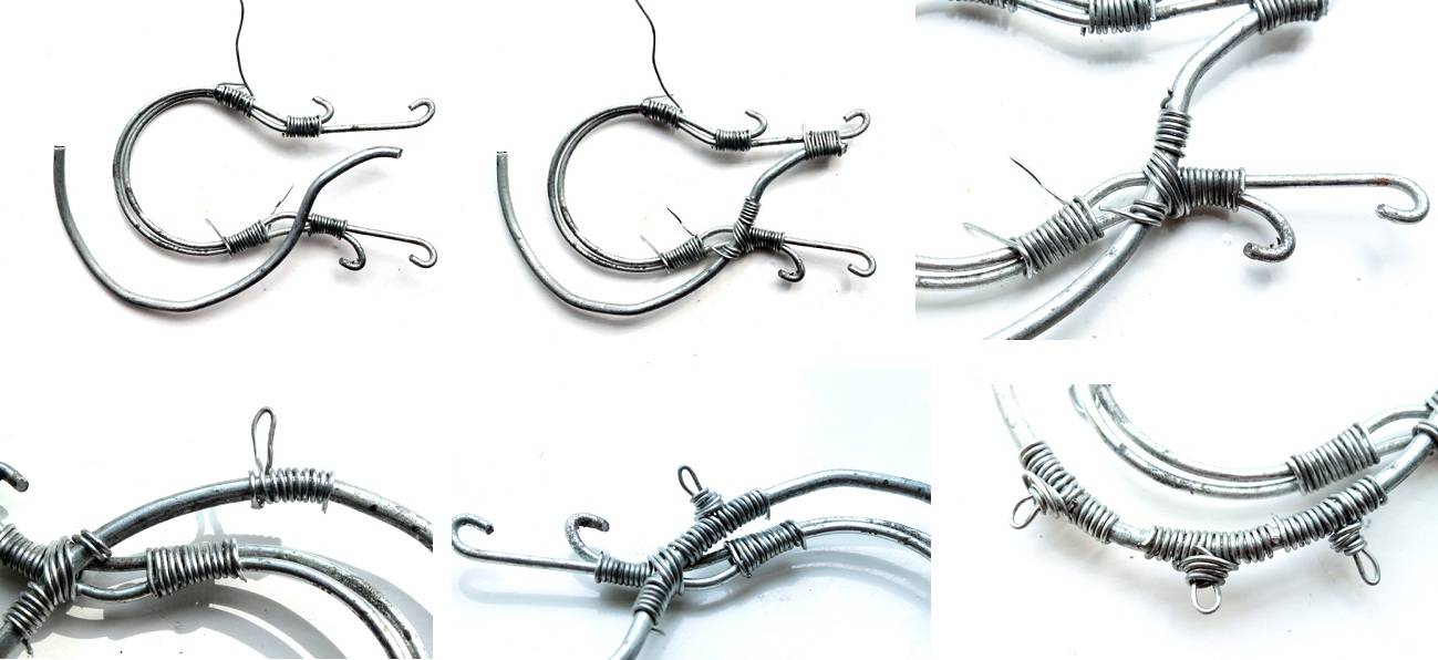 Отрезав необходимые куски проволоки (полосы, сетки) их сгибают и скрепляют более тонкой проволокой или спаивают (сваривают). Для удобства первоначальную фиксацию можно выполнить с помощью стяжки для проводов.