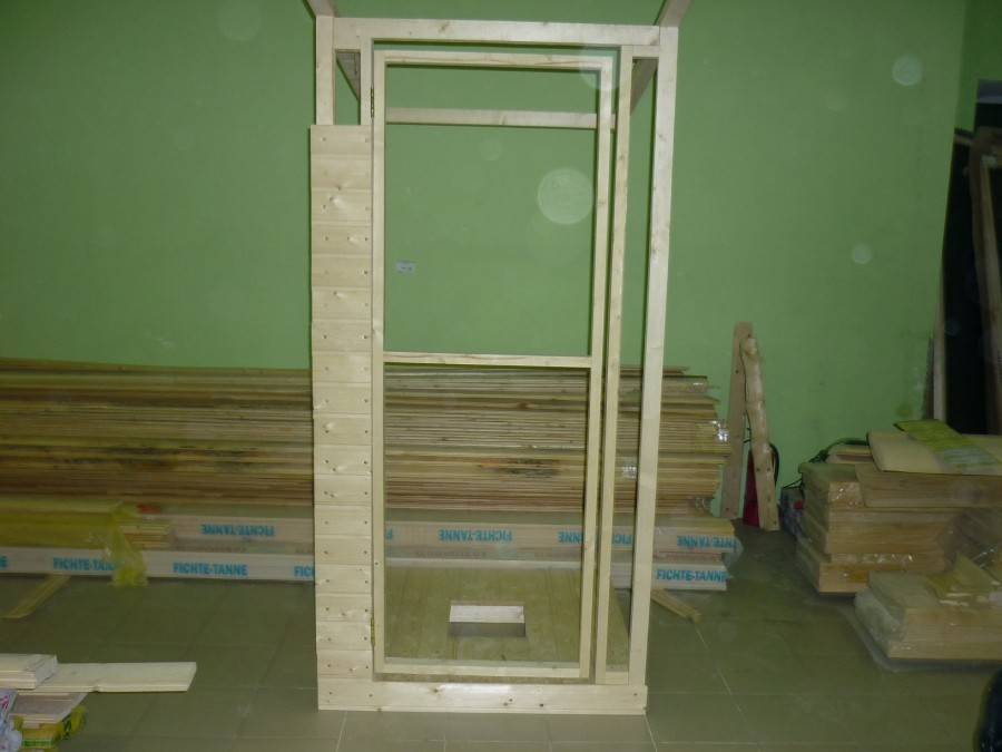 После окончания сборки. Можно смело производить монтаж в проем. (см. Установка деревянной двери).