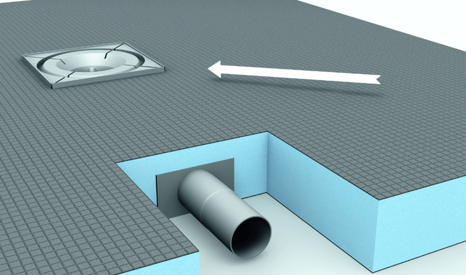 На следующем этапе монтажа формируется поддон для слива воды. С этой целью делают заливку пола бетонной смесью, в результате чего он должен стать выше на 8-12 сантиметров. Обязательно нужно сделать небольшой уклон в сторону слива и установить место, где будет располагаться трап, с учетом запаса на установку панелей и отделочных материалов.