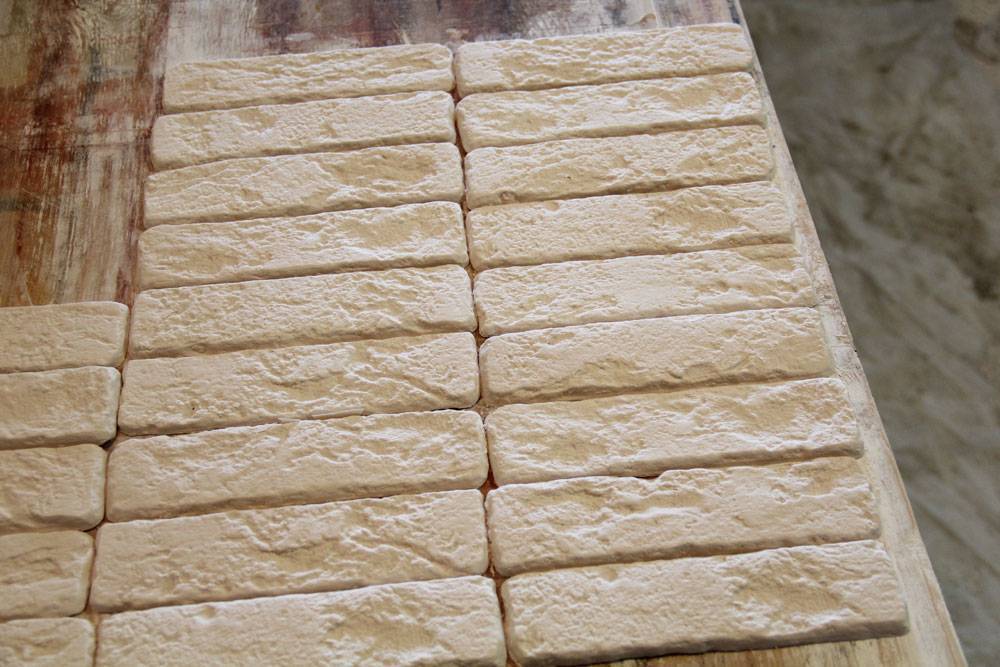 Гипсовый. Один из видов декоративного камня, который является очень популярным на современном строительном рынке. Выполняется посредством использования специальных форм и технологии литья. Для изготовления в домашних условиях, как правило, используют именно эту разновидность декоративного кирпича. Однако облицовочный материал, выполненный из гипса, не является устойчивым к воздействию низких температур. Поэтому его можно использовать только для отделки внутренних поверхностей в помещениях, температура которых составляет не ниже +18 °C.