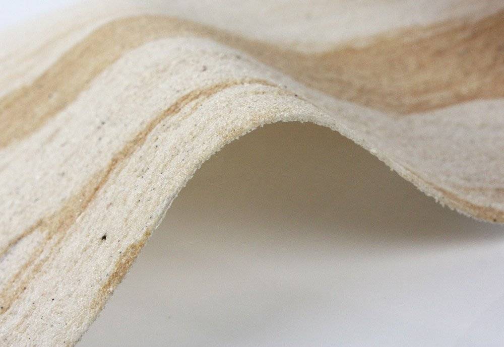 Суть метода получения гибкого камня заключается в следующем: минеральный наполнитель фиксируют к полужидкой основе из полимерных материалов, например, из акрилового клея. К этой основе предварительно добавляют отвердитель, вызывающий застывание. В большинстве случаев конструкцию укрепляют стеклотекстилем, не дающим гибкому камню раскалываться при монтаже. Отвердевшие плитки разрезают и крепят на стену или другую поверхность.