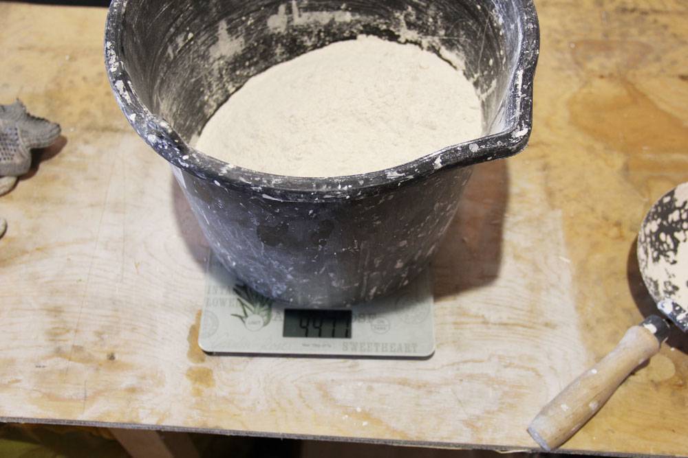 Теперь расскажу как я опытным путем определяю количество ингредиентов для новых форм. Беру сухой гипс, заполняю им форму, сверху срезая остатки шпателем. Затем пересыпаю его в ведро и взвешиваю. Убираю из этого количества примерно 30%. Разбавляю водой 1 к 1 с водой и делаю заливку. Если раствора получилось много, то примерно “на глаз” убираю в равном соотношении гипс и воду и снова делаю заливку. Если смеси не хватило, чтобы полностью заполнить форму, то добавляю и т.п. Таким способом вы можете узнать необходимое количество, главное не забыть все и записать в блокнот.