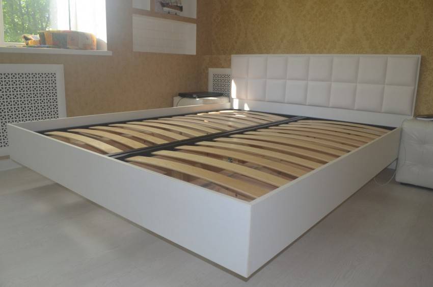 Когда проектное решение по изготовлению кровати не предусматривает бортик, матрац, скорей всего, будет сваливаться с нее в процессе сна. В среднем такое изделие весит около восьмидесяти килограмм, располагается на сильно скользящей поверхности. Это способно стать причиной травмирования и иных печальных последствий. Кроме этого, матрац должен выветриваться и «дышать». А двуспальная кровать, изготовленная своими руками, чаще всего под своей основой не имеет пространства, необходимого для вентилирования.