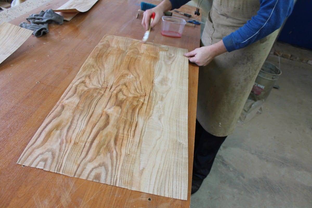 Проклеивание – процесс, без которого сделать качественную кровать не получится. Наносить клей на каждую из поверхностей нужно маленьким зубчатым шпателем. Детали удерживаются в течение четырех-десяти минут.