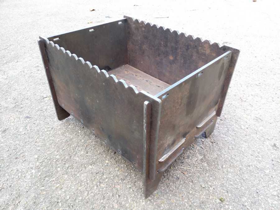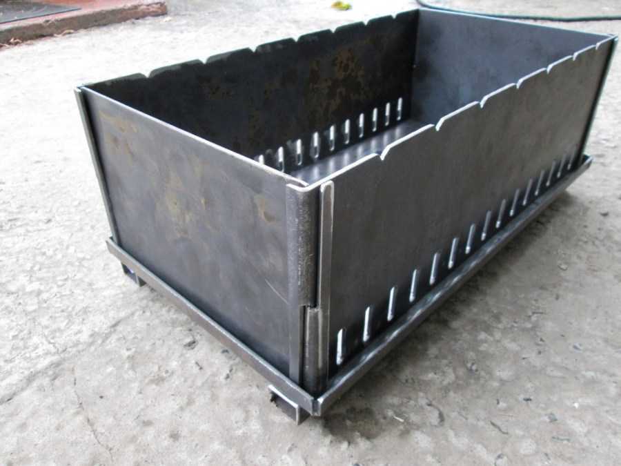 Для переносных вариантов жаровен, нужно брать металл меньшей толщины. Это один из способов облегчить конструкцию, ведь вы помните, что может возникнуть ситуация, когда ее придется нести с собой в руках на достаточно дальнее расстояние. В тонкостенном мангале, даже из очень качественного металла, жечь дрова нельзя. Здесь используются готовые угли, упаковки которых можно приобрести в магазине или подготовить их самостоятельно, в костре.