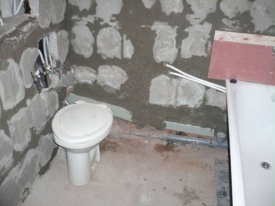 Ломание перегородки между ванной и туалетом (если планируете совмещать ванную с туалетом).