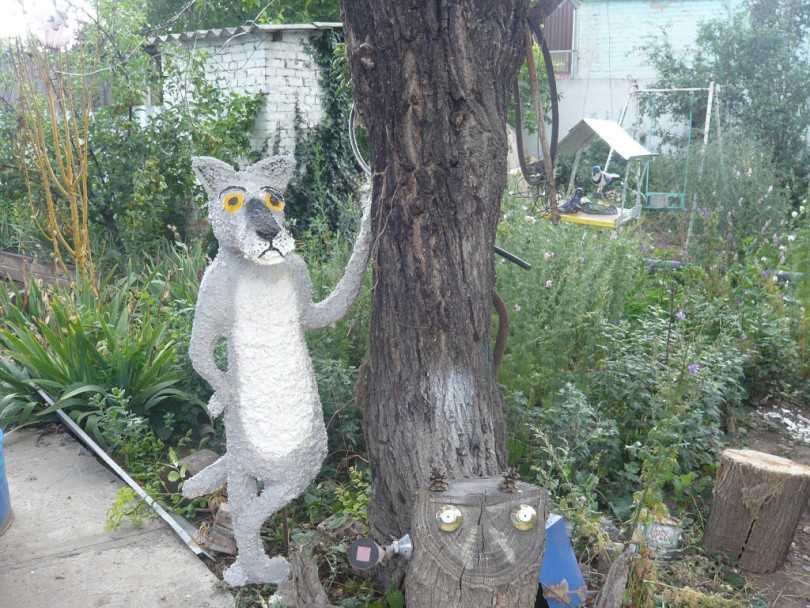 Еще один интересный вариант – садовая фигурка кот. Этих и других животных можно сделать разных размеров, но лучше подобрать реалистичные параметры.