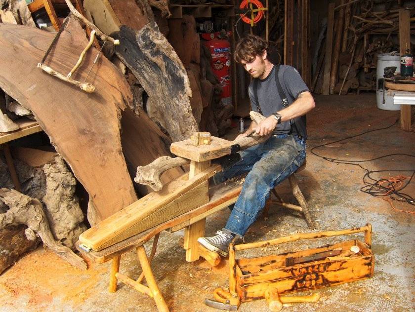 Для работы с деревом понадобятся самые простые инструменты, которые обычно есть в арсенале у любого домовладельца или дачника – топор, пила или лобзик, наждачная бумага, гвозди и молоток или шуруповёрт с саморезами. Для некоторых изделий нужно запастись лаком или красками.
