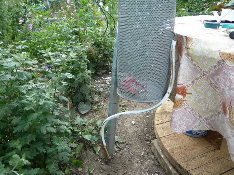 - Берем любую проволоку, сгибаем пополам, вставляем в центр раствора и завязываем носок в узелок, а также перевязываем получившийся мешочек веревкой.