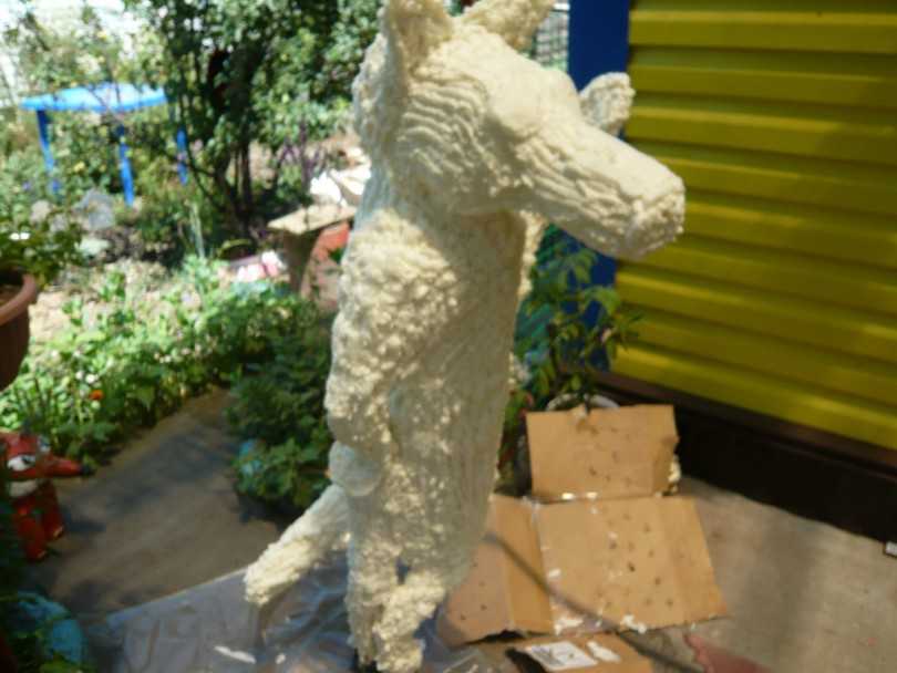 Важно! Нельзя изготавливать пенную скульптуру при минусовой температуре воздуха на улице. Пена токсична, поэтому все работы нужно производить в резиновых перчатках.