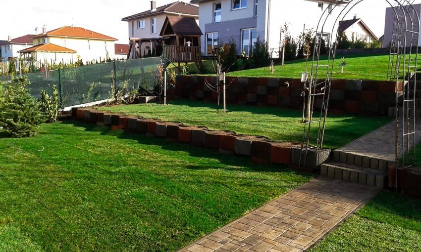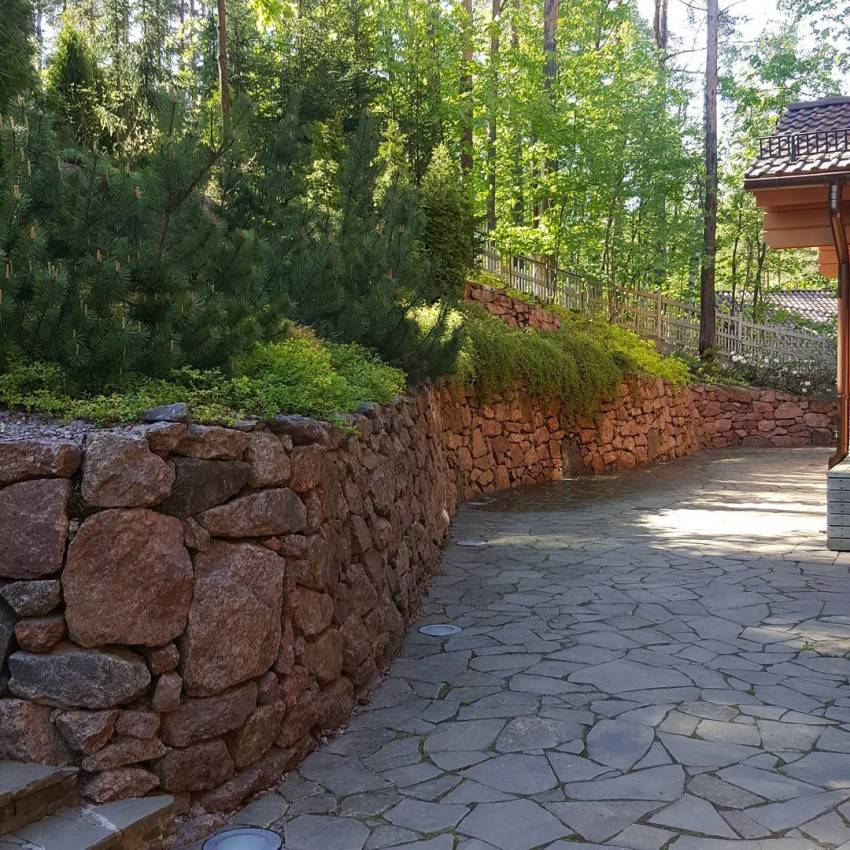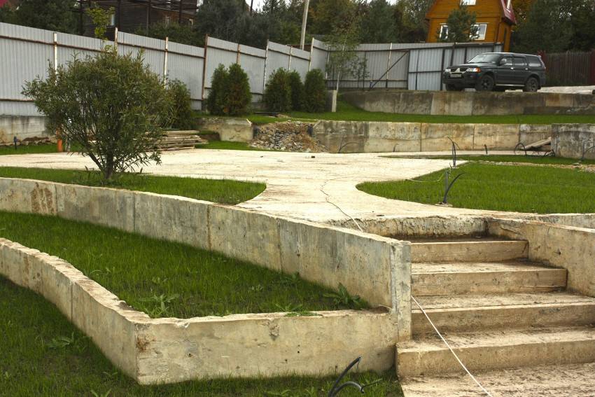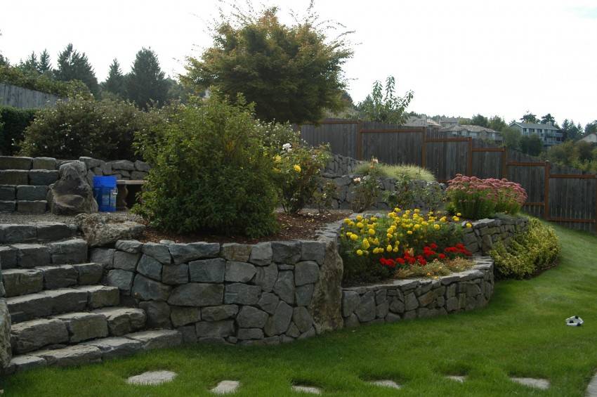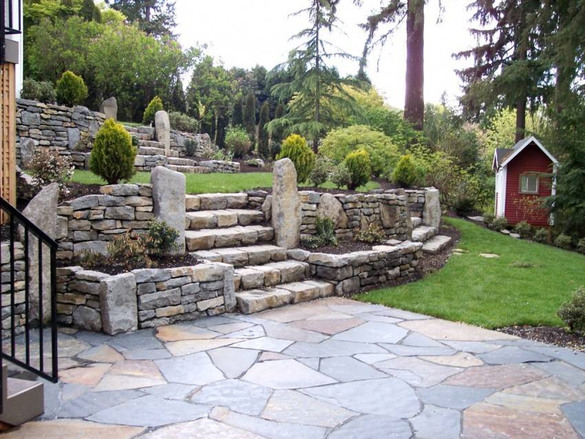 Еще один пример небольшой композиции, состоящей из подпорной стенки и ступеней.