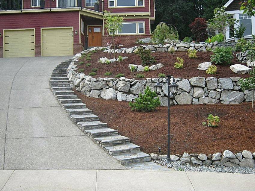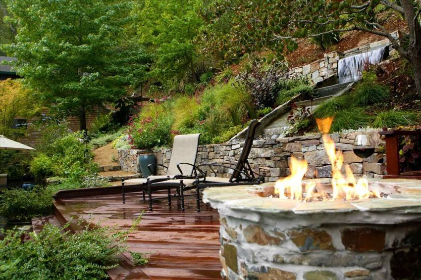Декоративные насаждения на крутом склонеИсточник dachnaya-zhizn.ru Зона отдыха у подножья склонаИсточник roomester.ru