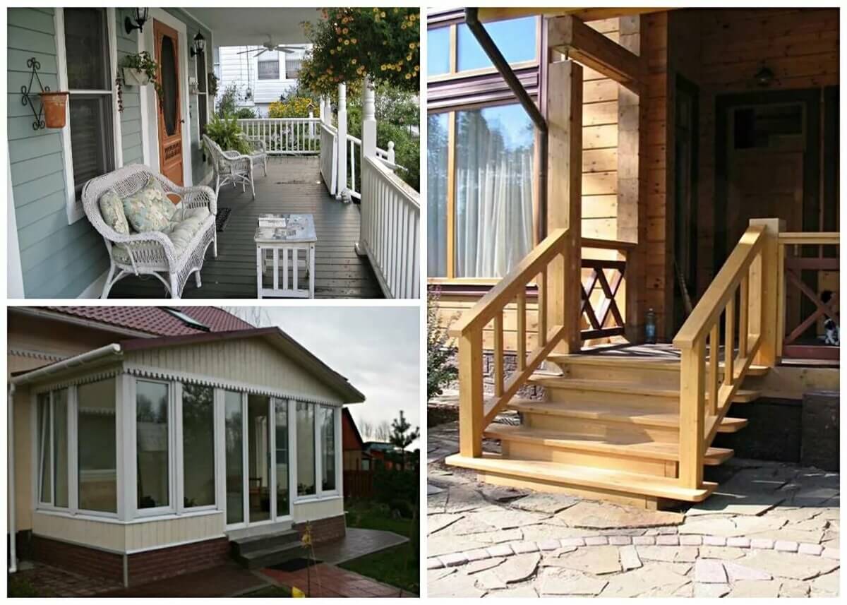 Вместе со своим функциональным назначением крыльцо также служит дополнительным украшением дома. Как итог, есть достаточно большое количество разновидностей конструкций, но в основном разделение идет по типу размещения крыльца относительно дома – оно может быть:
