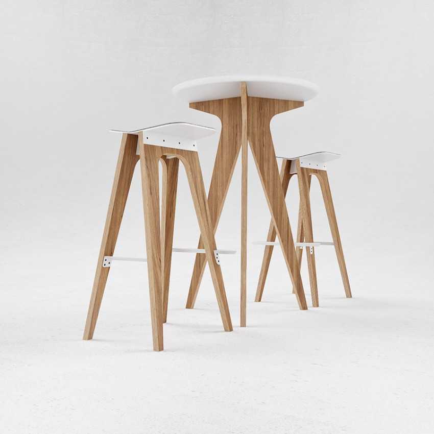 Складной табурет обладает шарнирными петлями. Сложить у такого трансформера можно как сидение (частично), так и опорную часть – ножки или стилизованные под них листы фанеры, имеющие вычурную форму. Чтобы такая конструкция не сложилась и человек не упал, в петлях предусмотрен фиксирующий элемент «замочного» типа. Складным можно сделать как обычный кухонный, так и «лесенный» (включая и барный) табурет.