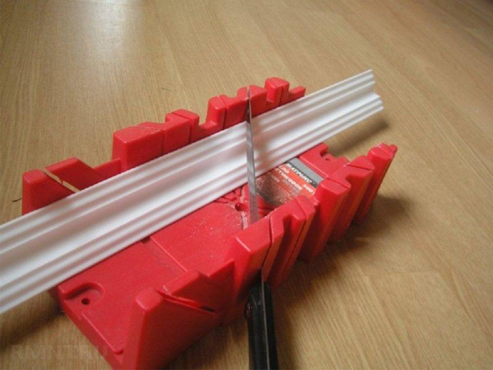 Обрезать с помощью стусла полиуретановый плинтус следует так: