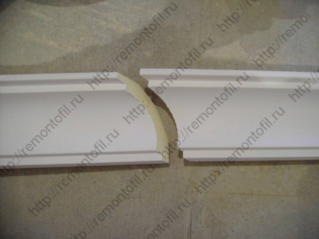- Подготовить потолочные плинтуса из пенопласта, нарезав изделия соответственно разметке.