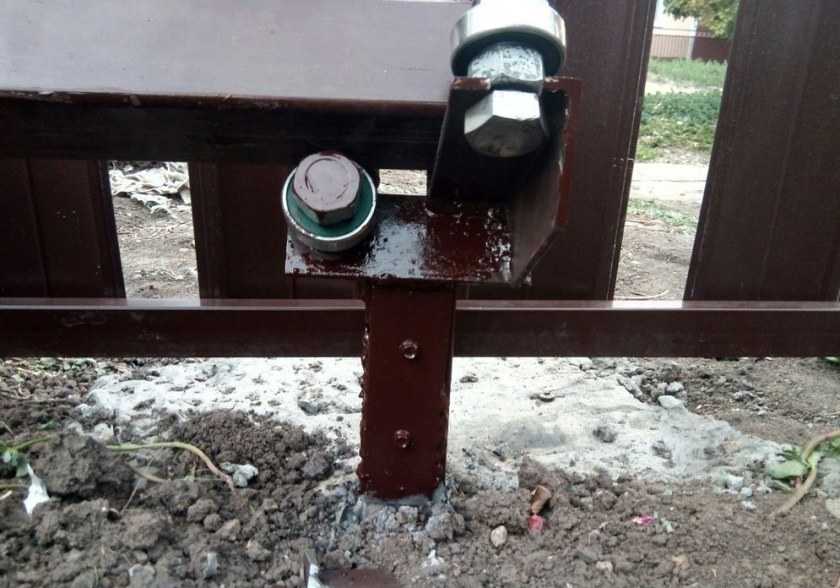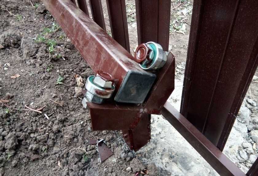 Снизу мобильной створки ворот также установлены ролики, по ним она и передвигается по смонтированному на поверхности земли рельсу или профилю.