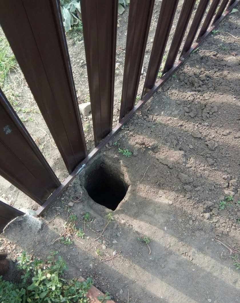 Следует пробурить необходимое вам отверстие. Это должно быть заглубление на половину будущего заглубления столба.