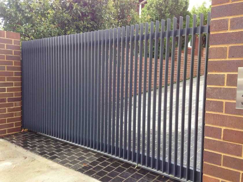 2. Откатные ворота, которые ходят по рельсу, установленному в проеме и вдоль стены, тоже не слишком популярный вариант, особенно в снежных и холодных регионах. Ворота будут передвигаться по рельсу свободно, если он будет очищен ото льда и различного мусора, но в зимнее время, при снежных заносах или обледенении створка не сможет открываться и закрываться без предварительной расчистки. Такой вариант ворот, скорее, хорош для южных регионов, где снег не лежит долгое время и не бывает сильных морозов.