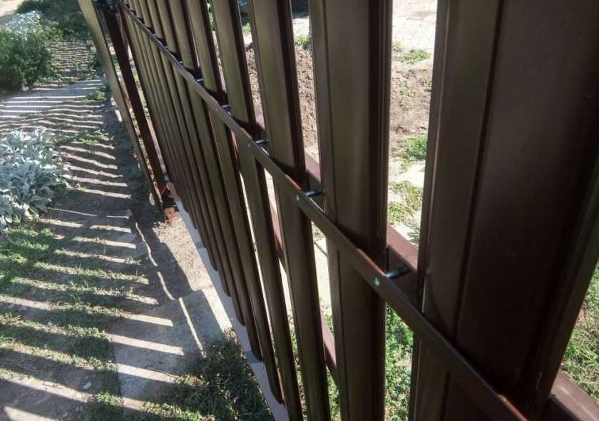 Недостатком ворот из профлиста является подверженность воздействиям ветровых нагрузок. Такие створки необходимо устанавливать на усиленные петли. Также стоит заранее позаботиться о правильной установке столбов. К недостаткам таких конструкций относится необходимость освобождения пространства для открывания.