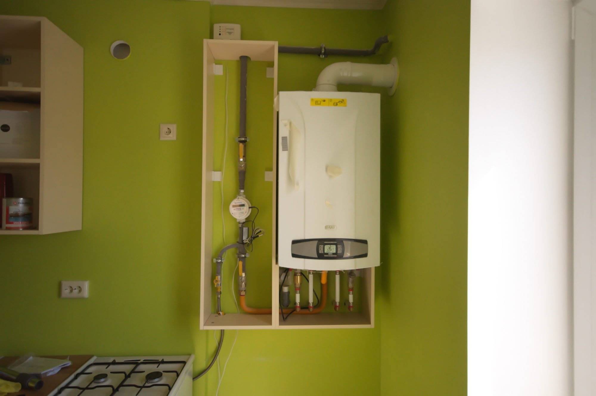 Открытый короб для газового котла на кухне