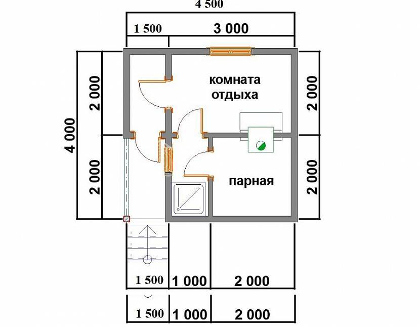 - Дверцы топки должны открываться по направлению к двери, а дверца каменки, наоборот, – по направлению к углу помещения.