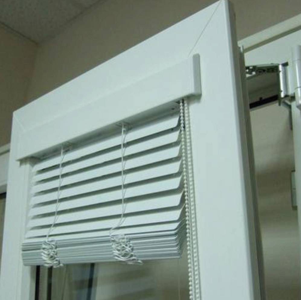 Межрамные жалюзи подходят для конструкций, у которых окно совмещено с дверным блоком