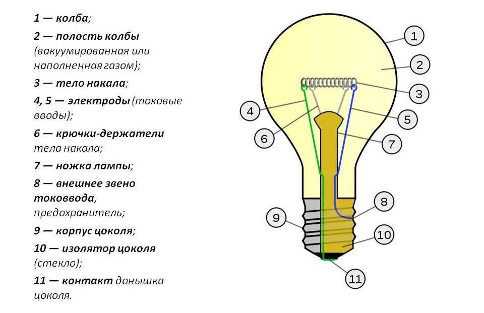 Каждая деталь в электролампе имеет своё предназначение и выполняет свои функции: