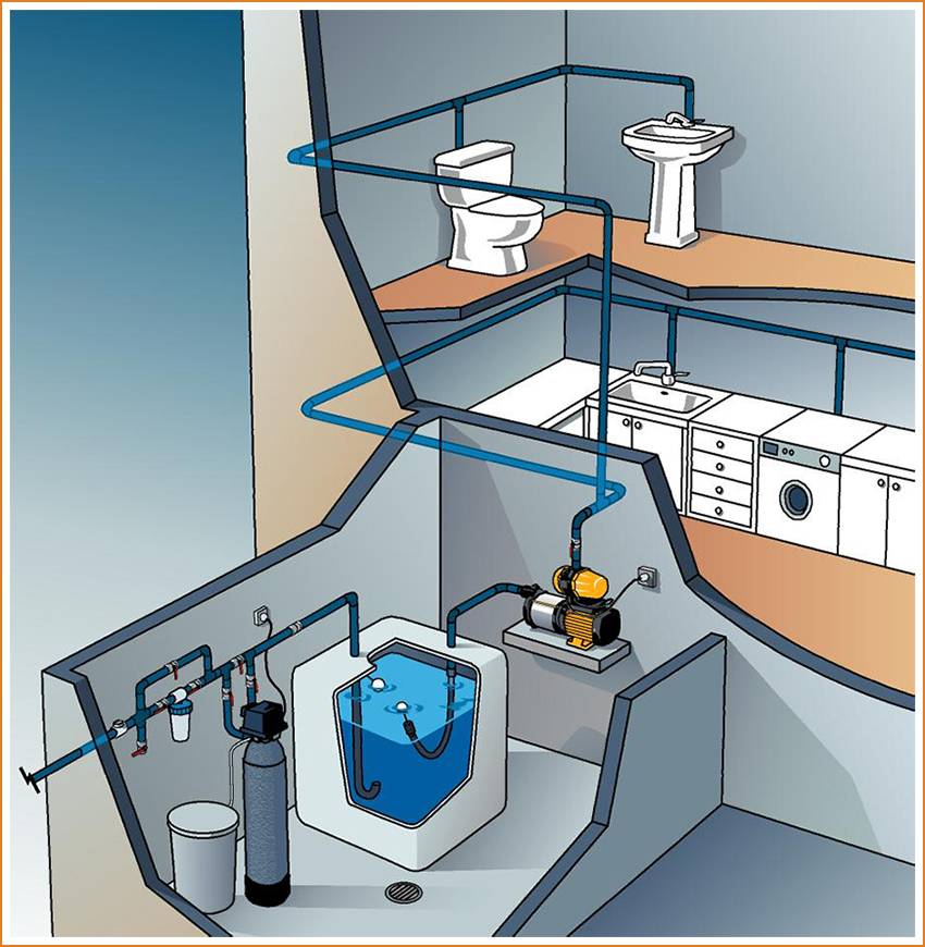 Установка бытовой насосной станции в коттеджах, дачных и загородных домах, пользующихся водой из собственных скважин, колодцев и других источников, переводит водопотребление на более высокий уровень.