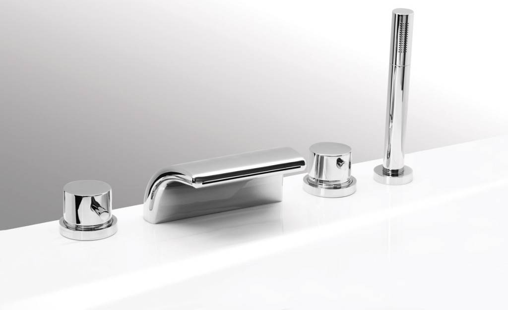 - Устанавливаемые на бортике ванны или плиточном бортике. Чаще всего такой смеситель устанавливают на бортах акриловых ванн, где имеются специально выделенное место. Очень редко их устанавливают на бортиках стальных ванн. Главное преимущество такого вида крепления это скрытый шланг од душа, который убирается в специальное отверстие. Но это преимущество чисто эстетическое, так как шланг при таком способе крепления чаще изгибается, а значит, и меньше служит.