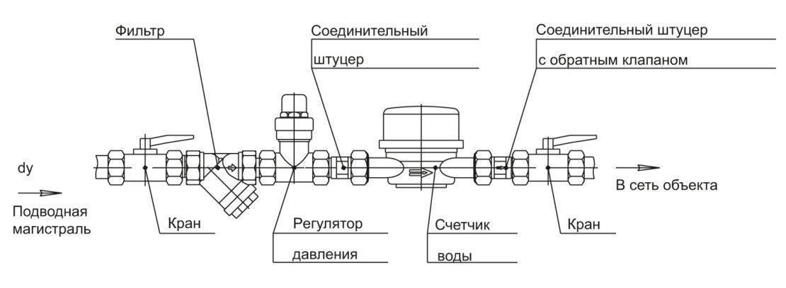 Процесс самостоятельной установки прибора учета воды выглядит следующим образом: