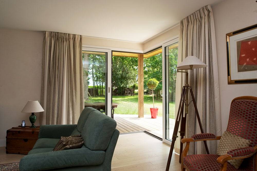 Для частных домов рекомендуется установка крупногабаритных оконных конструкций, так как визуально они дают больше пространства, делают помещение более светлым. Для того, чтобы зимой помещение не остывало, используют многокамерный стеклопакет, кроме того, можно применить специальные энергосберегающие стекла. Они способны отразить образовавшееся в комнате тепло, не дав ему рассеяться на улице, благодаря этому экономия энергоресурсов зимой достигает достаточно большого процента.