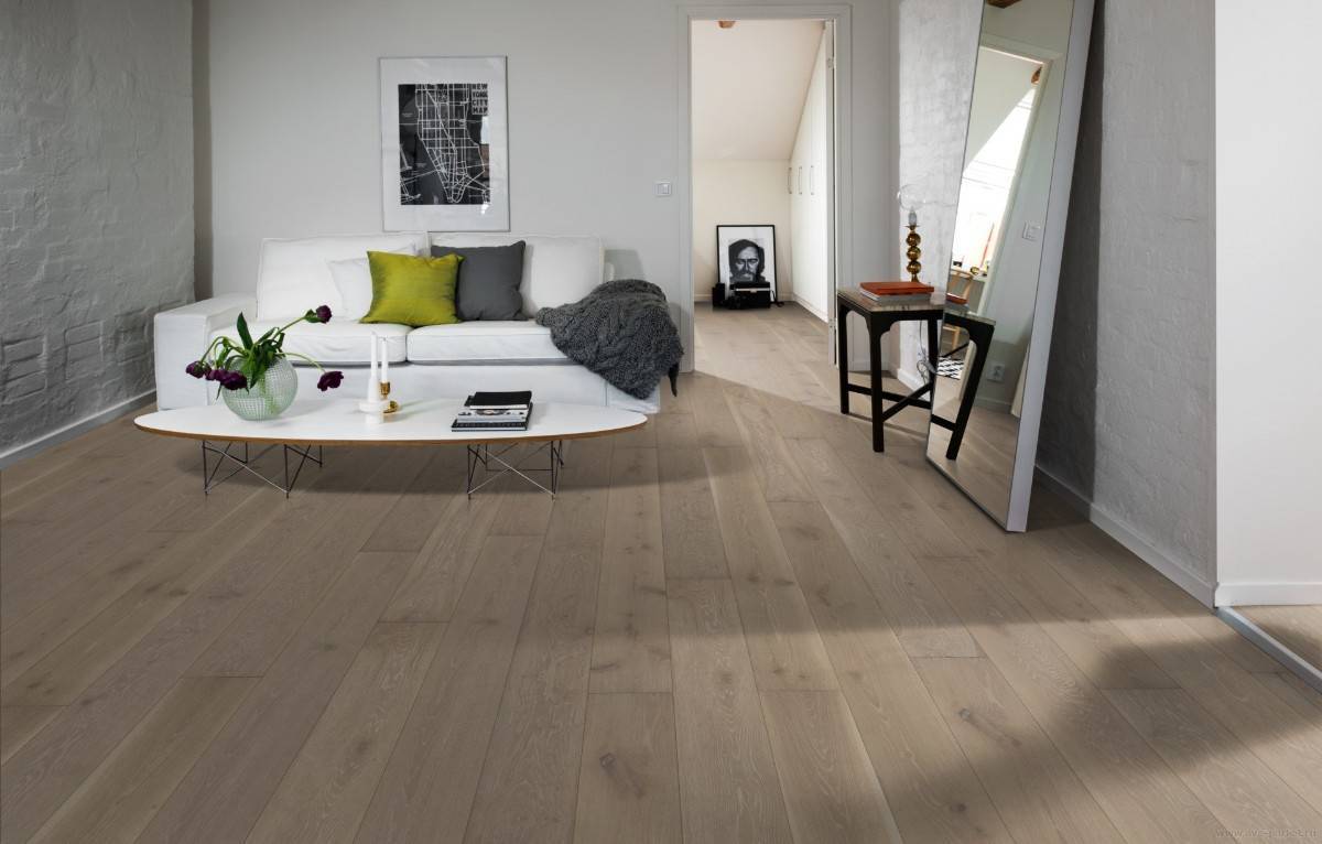 Покрытие 22 класса можно использовать в любой комнате дома. Способствует этому и универсальный дизайн: беленый дуб создает атмосферу уюта, визуально расширяет пространство, придает интерьеру аристократичность. Вспененная основа отличается высокой влагостойкостью, что позволяет укладывать материал на балконе или на кухне.