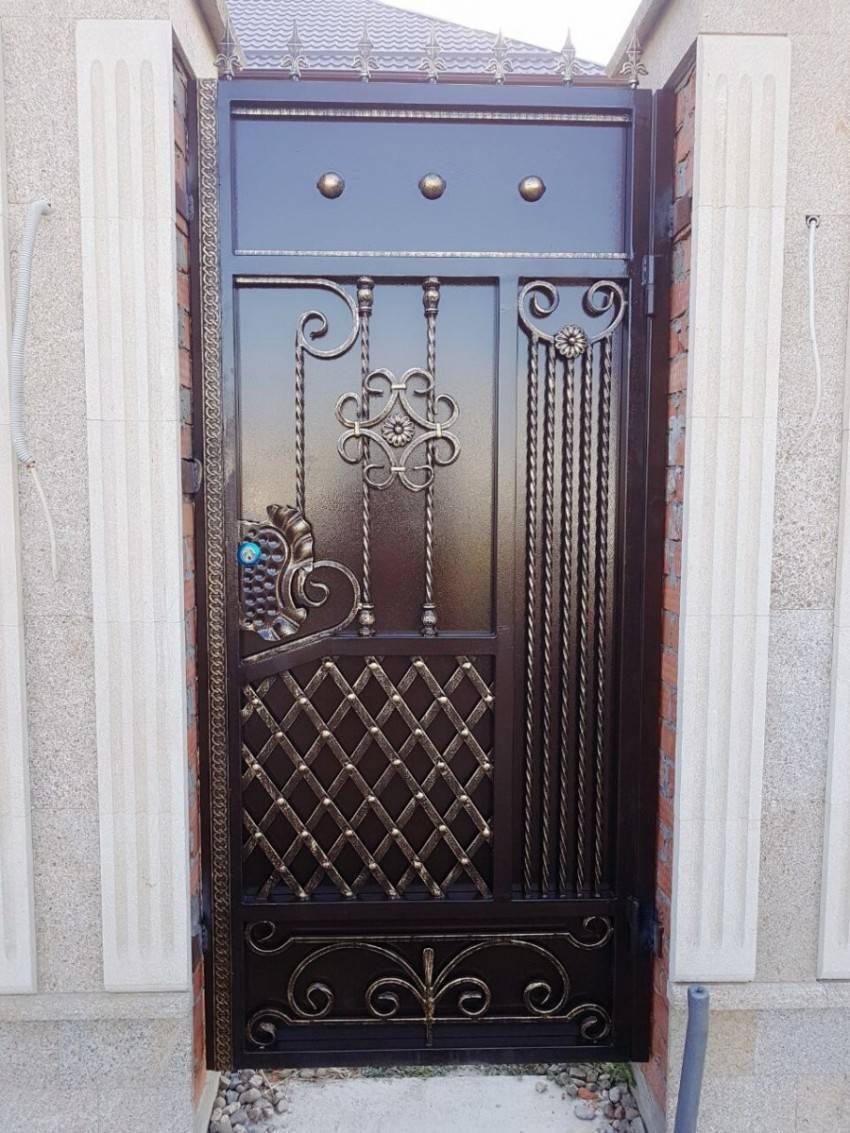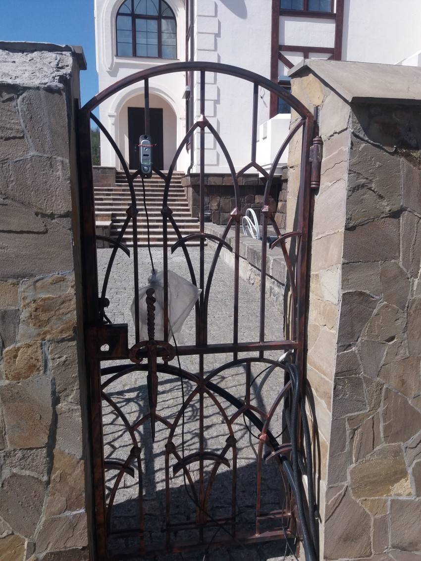 Когда весь декор зафиксирован на калитке приступаем к его покраске. Чаще всего их делают при помощи золотой или контрастной краски. Для этого необходимо приобрести специальные лакокрасочные составы, которые предотвратят появление ржавчины на поверхности железных деталей.