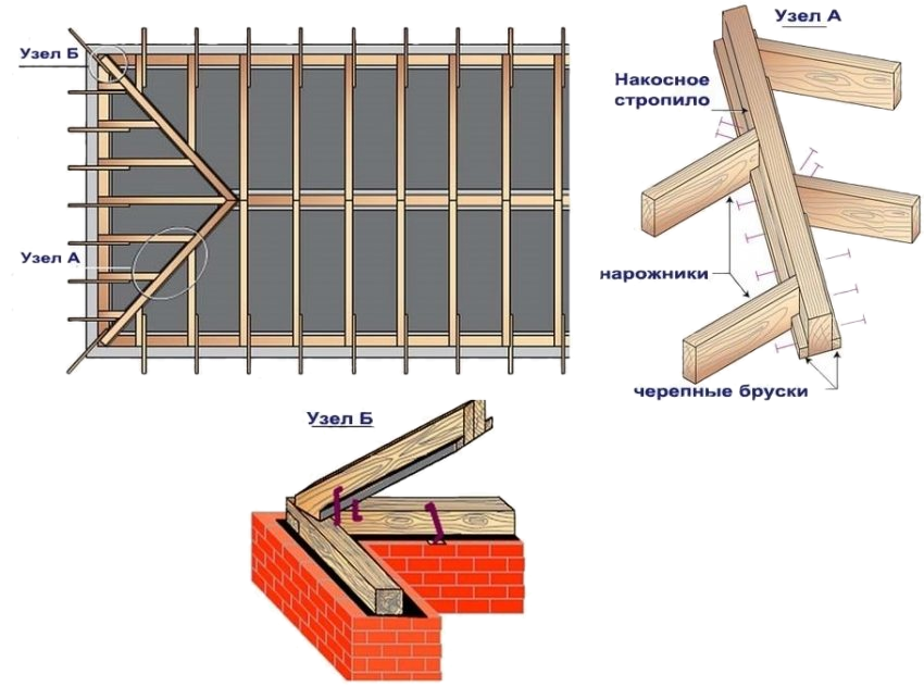 Вальмовая крыша стропильная система — схема соединения основных узлов конструкции