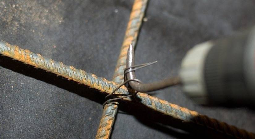 Вязка арматуры при помощи проволоки проводится вручную. Есть некоторые приспособления, облегчения процесса — крючки, клеши, пистолеты. Но все равно процесс занимает приличное количество времени.