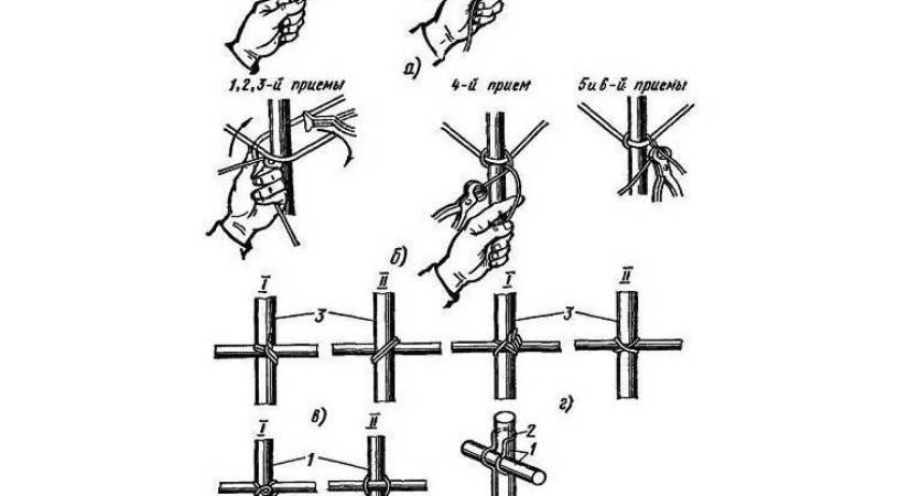 Для выполнения работ используют отожженную проволоку, диаметром от 1 до 1,4 мм. Длину заготовок обычно принимают равной 20 см. Существует два типа инструмента для вязания каркасов: