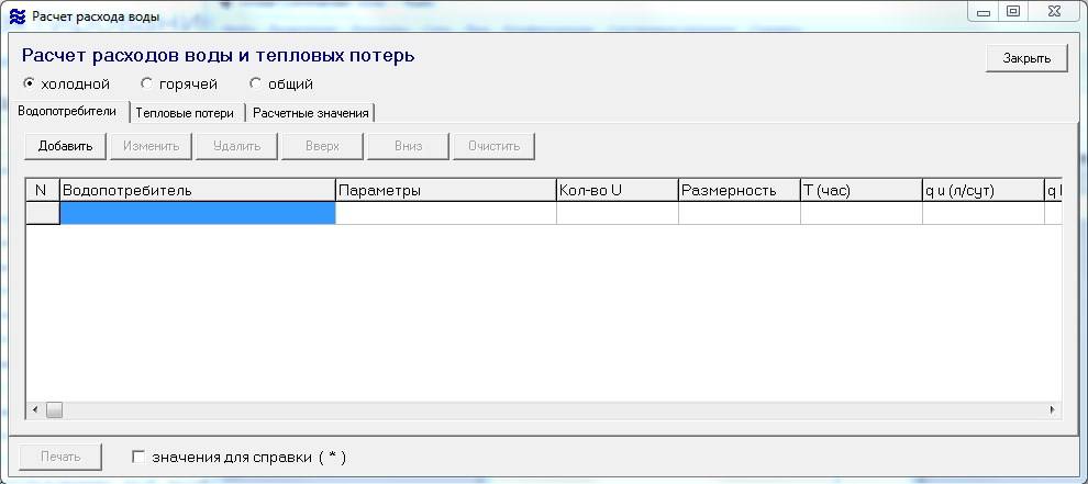 Выбираете «Расчёт расхода горячей воды и холодный воды»