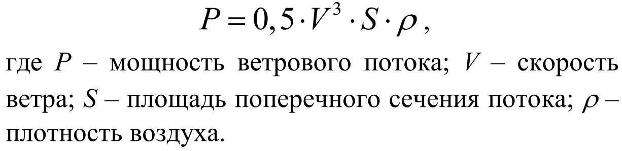 Ниже формула расчета мощности энергии ветра P=0.6*S*V^3, где
