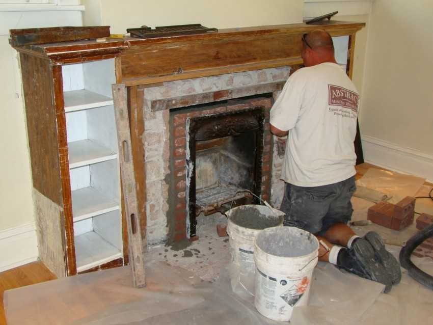 Кладка камина с чугунной топкой и металлическим дымоходом