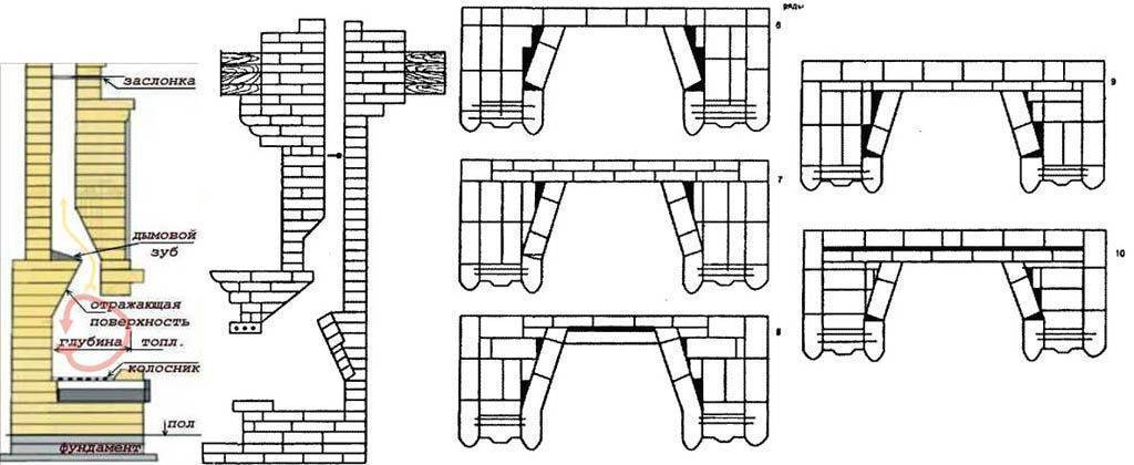 Чертежи не упоминают об одной особенности кирпича, а именно о способности к поглощению воды. Поэтому строительный материал перед кладкой необходимо замочить. Кирпич замачивается на протяжении всего строительства, а не только во время формирования отдельных элементов отопительного оборудования.