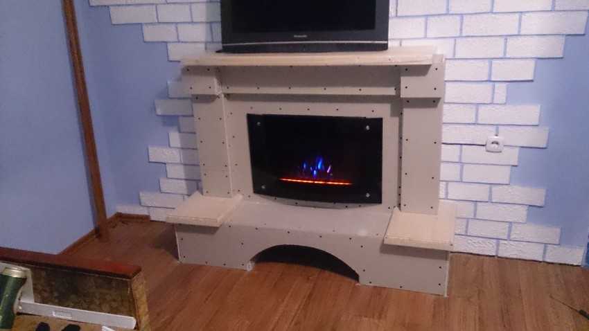 Такой вариант подходит, если мы делаем фальш-камин с деревянной рамой, стенами, или хотя бы ДВП, ДСП.