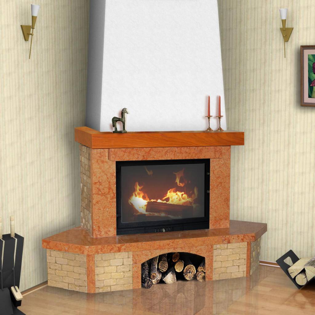 Самостоятельное изготовление дает множество преимуществ перед покупным каминокомплектом. При покупке вам приходится соглашаться с предложенным выбором. Самое главное, чтобы общий тон совпадал приметно с тоном отделки комнаты. Портал, построенный самостоятельно, может быть отделан любым материалом по вашему вкусу.