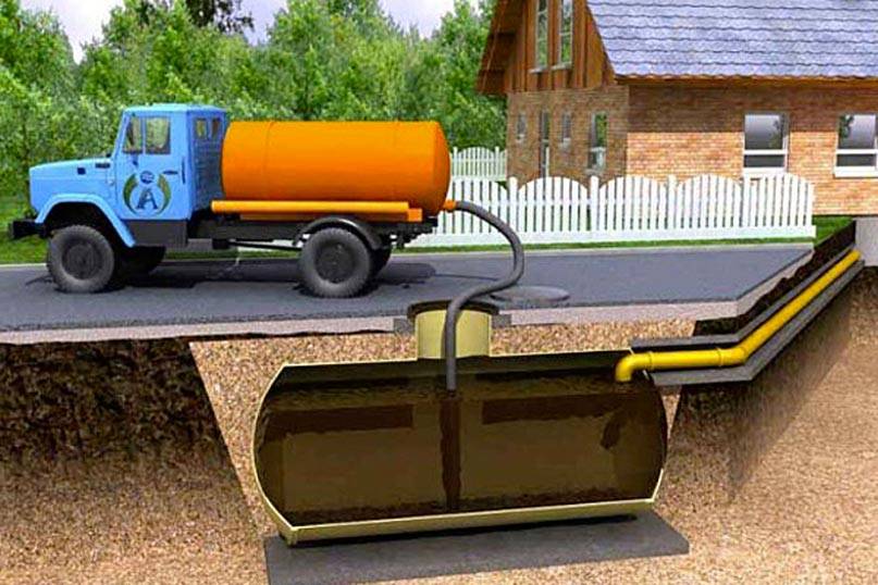 В такой емкости стоки накапливаются до ее заполнения, после этого необходима откачка ассенизатором. Такая канализация для частного дома так же проста и дешева, и при хорошем качестве бака даже может применяться вблизи водоемов и при высоком уровне грунтовых вод (с принятием мер против всплытия в результате паводка или поднятия грунтовых вод).