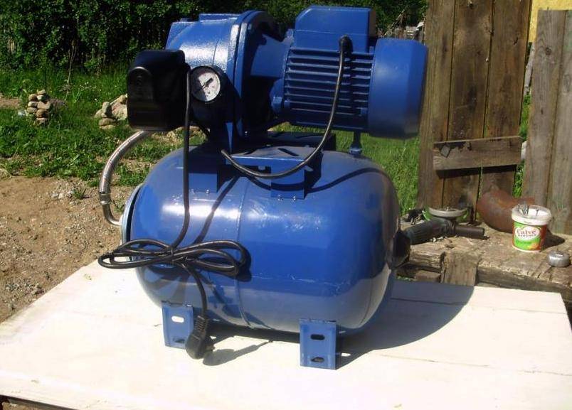 В любой станции присутствует такой обязательный элемент, как накопительный бак или гидроаккумулятор. Стоит сказать, что установка с накопительным баком является устаревшей конструкцией из-за наличия у неё большого количества недостатков. Прежде всего, бак имеет достаточно большую емкость. Помимо этого, для регулирования уровня воды и ее напора используется поплавок, обеспечивающий срабатывание датчика в случае падения уровня воды. В этом случае датчик подает сигнал на включение подкачки.