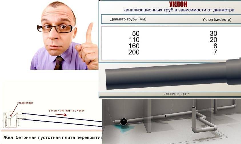 Если, наоборот, увеличить уклон, тогда вода создаст много шума и система может засориться гораздо быстрее