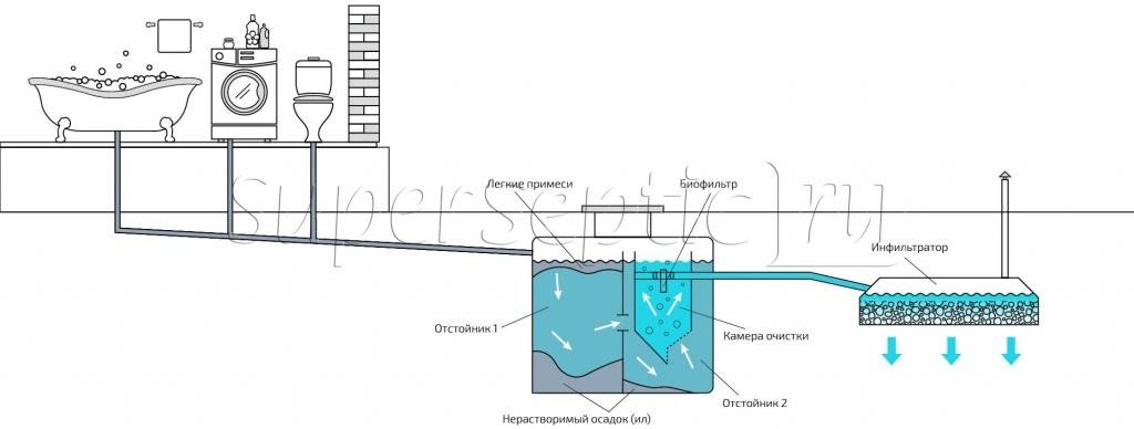 Когда сточные массы требуется подвергнуть обеззараживанию и очистить до максимального уровня, чтобы сделать сброс воды в сточную канаву или грунт, тогда необходимо воспользоваться станцией биоочистки для домашнего применения, имеющей от трех и более камер. В них стоки поступают в определенной очередности.