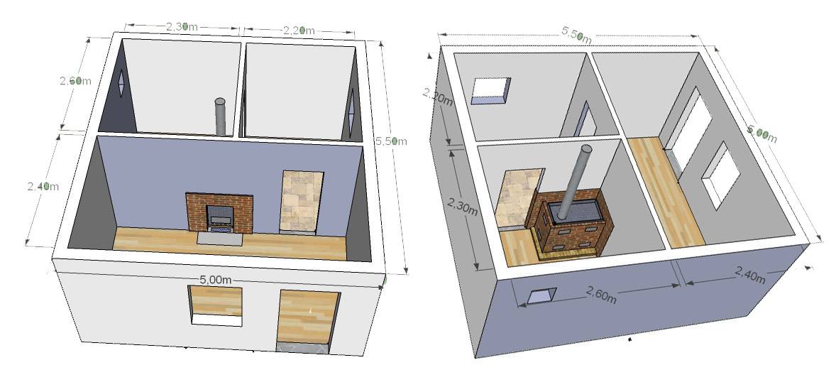 - Тщательное планирование. На стадии создания проекта уменьшить размеры комнат до минимально допустимых. От комнаты отдыха можно отказаться. А вот парилку следует выполнять с учетом всех требований безопасности: в слишком маленькой парилке легко обжечься о каменку или обвариться паром. Помывочную можно объединить с парилкой.