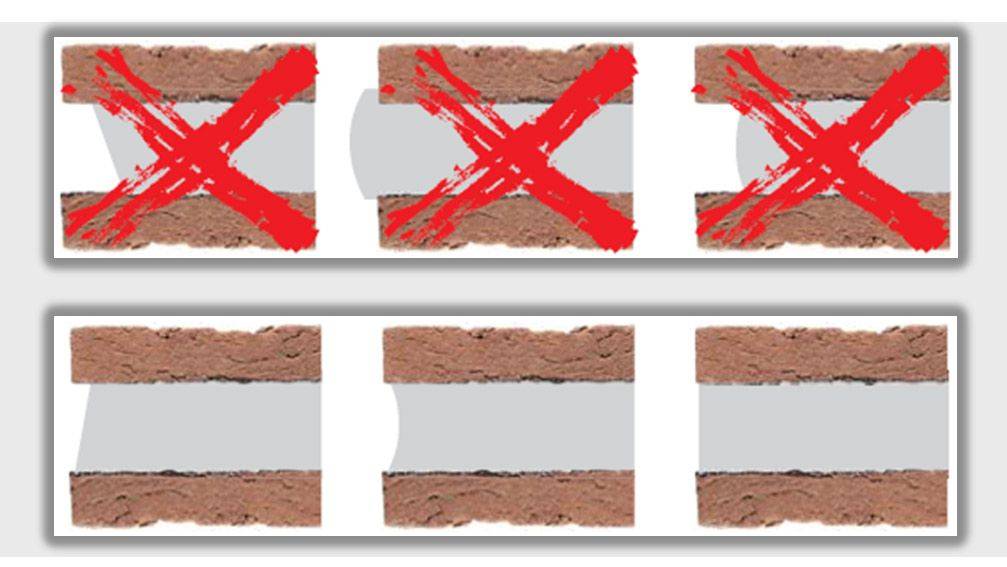 Бывают случаи, когда застройщики по неопытности или с целью экономии средств покупают некачественные кирпичи. Оптимальный вариант – перед приобретением взять несколько кирпичей, по очереди прислонять их друг к другу всеми гранями и проверять зазоры и разброс по размерам. Но если некачественный материал уже приобретен, то придется учиться работать с ним. Класть сего нужно по несколько измененной технологии.